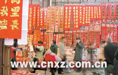 ????? 1月18日始,市宣武市場舉辦迎新年春聯大展銷,來自蘇魯豫皖周邊地區的小商販趁著好天氣紛紛前來選購。